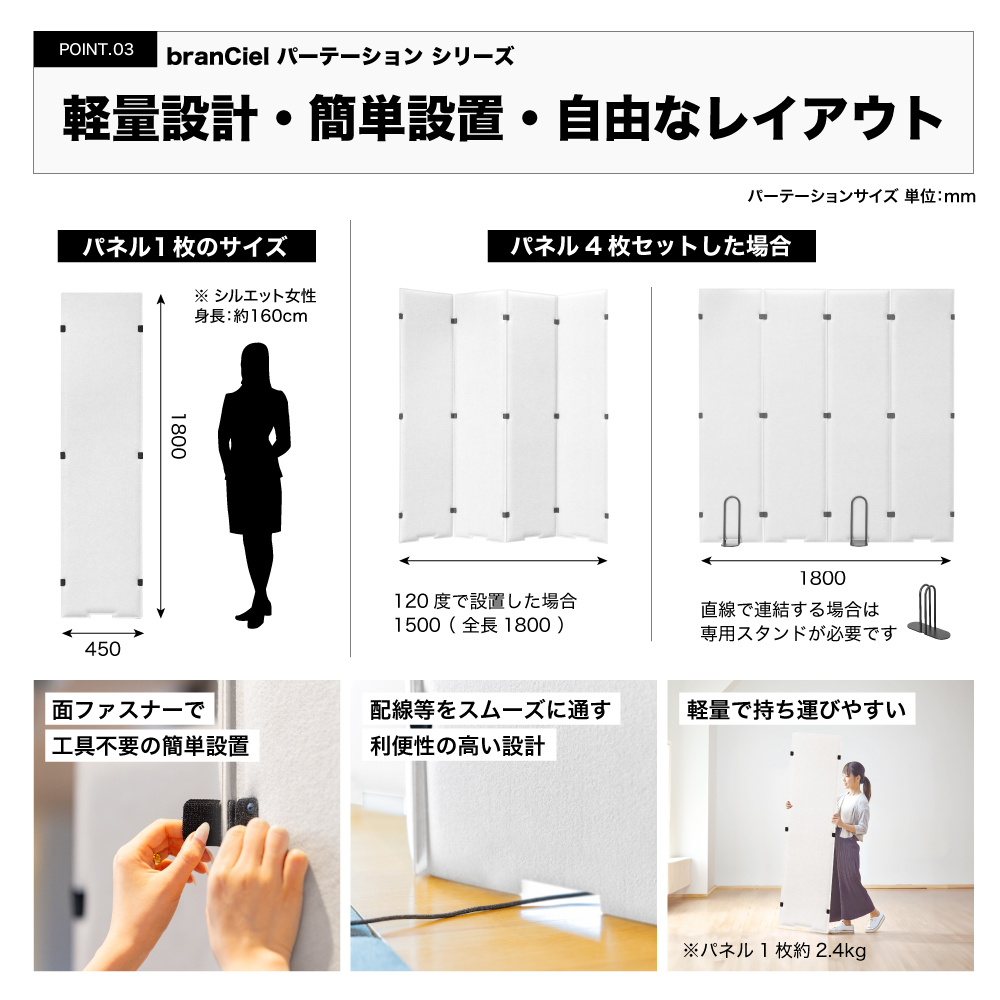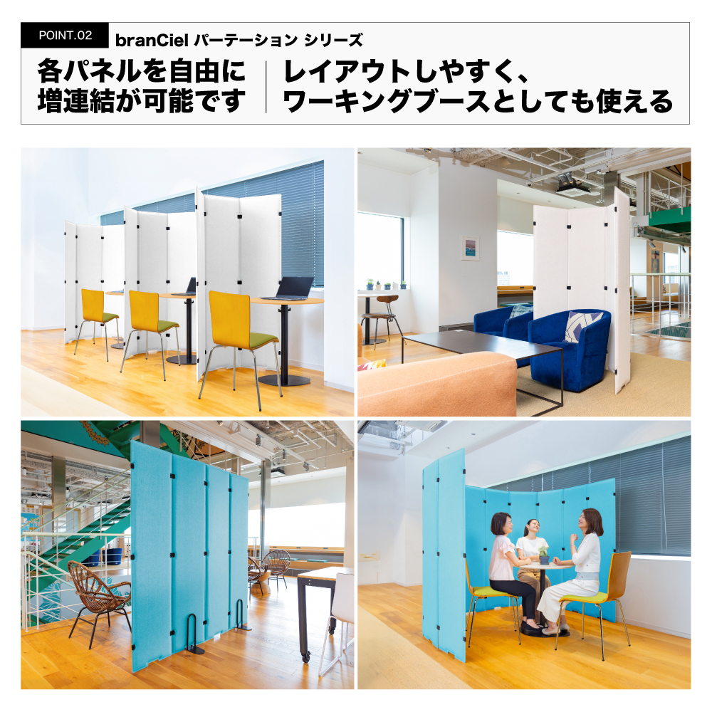 フェル素材のカジュアルなパーテーション。自由に連結できるのでレイアウトしやすいのが特徴です。オフィスはもちろんご自宅でも使いやすい商品です。