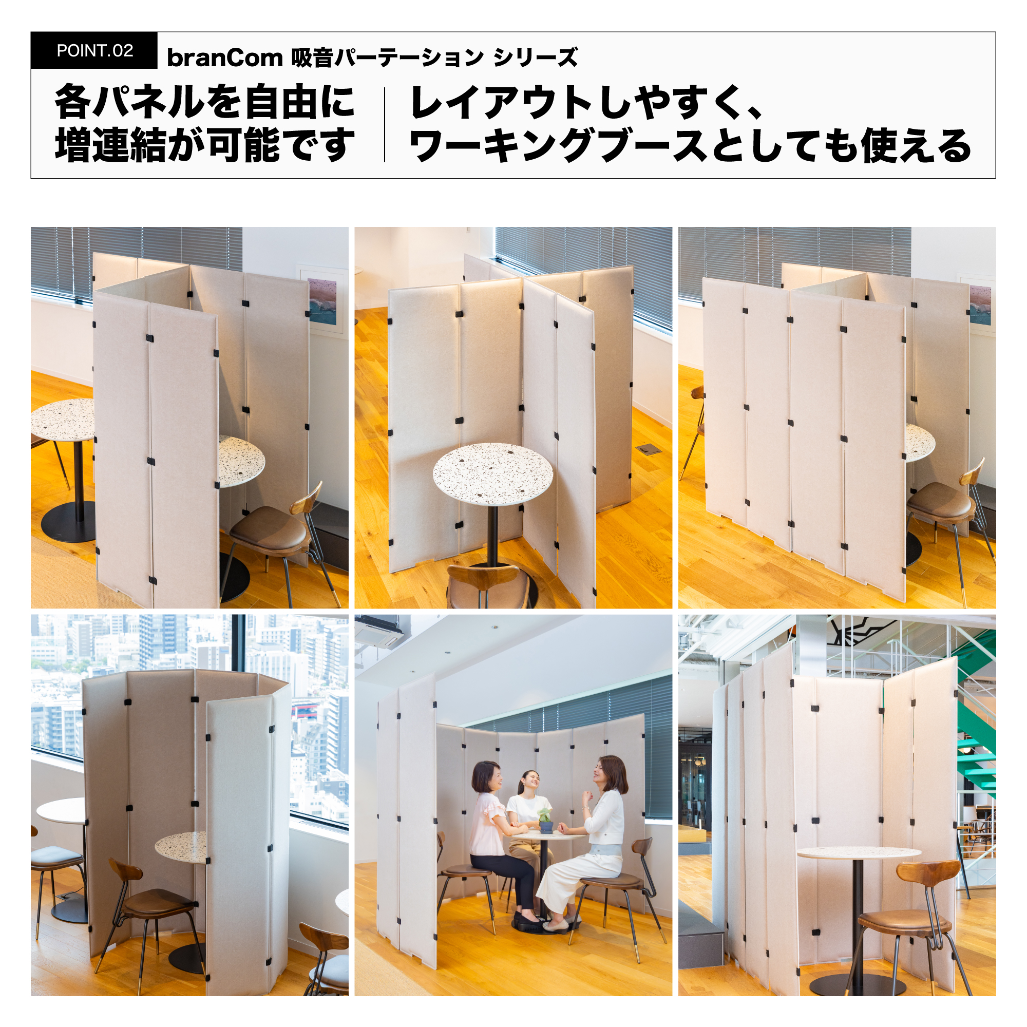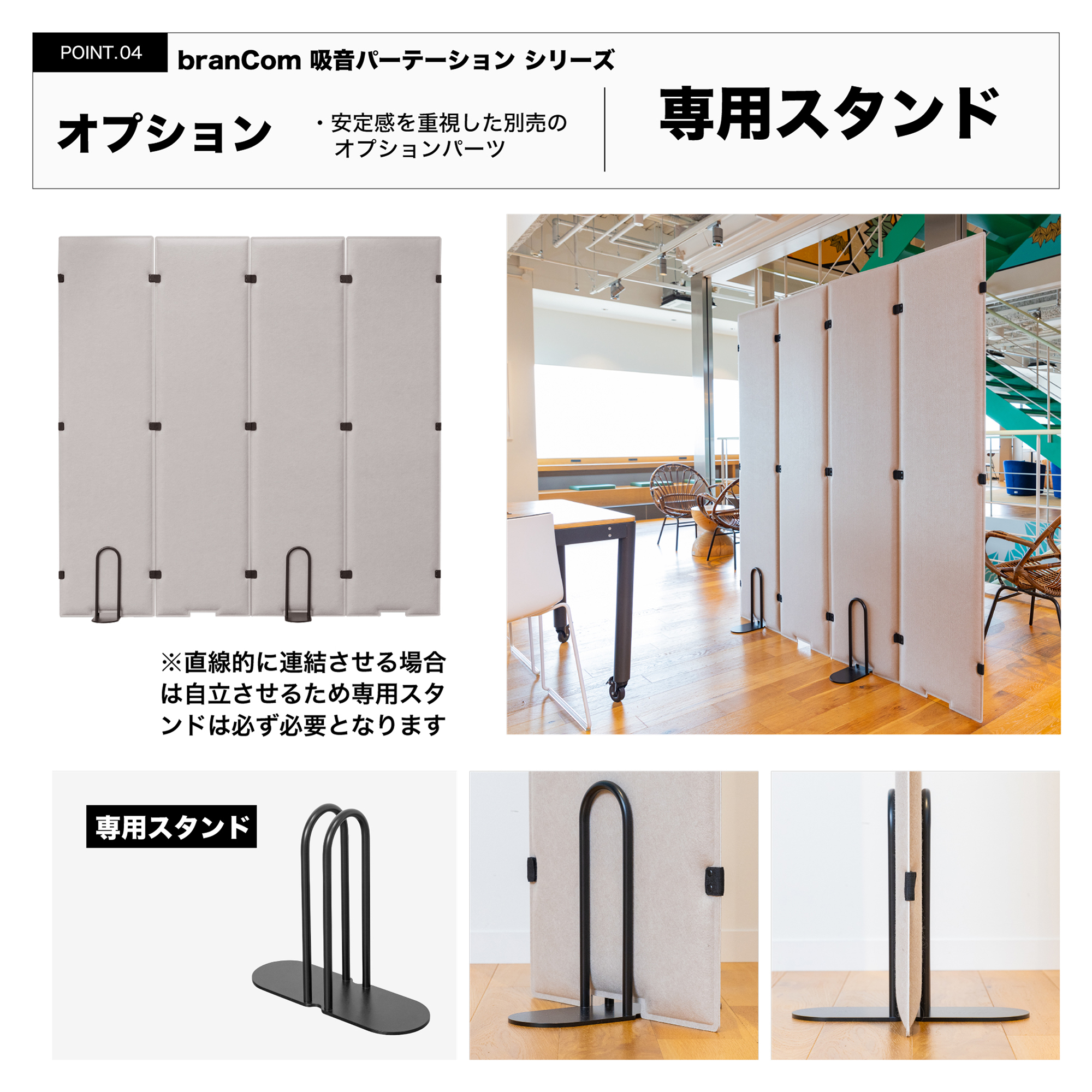 branCom 吸音4連パーテーション グレージュ ついたて 衝立 おしゃれ オフィス オフィス用品 会社用 リモート会議 ミーティング