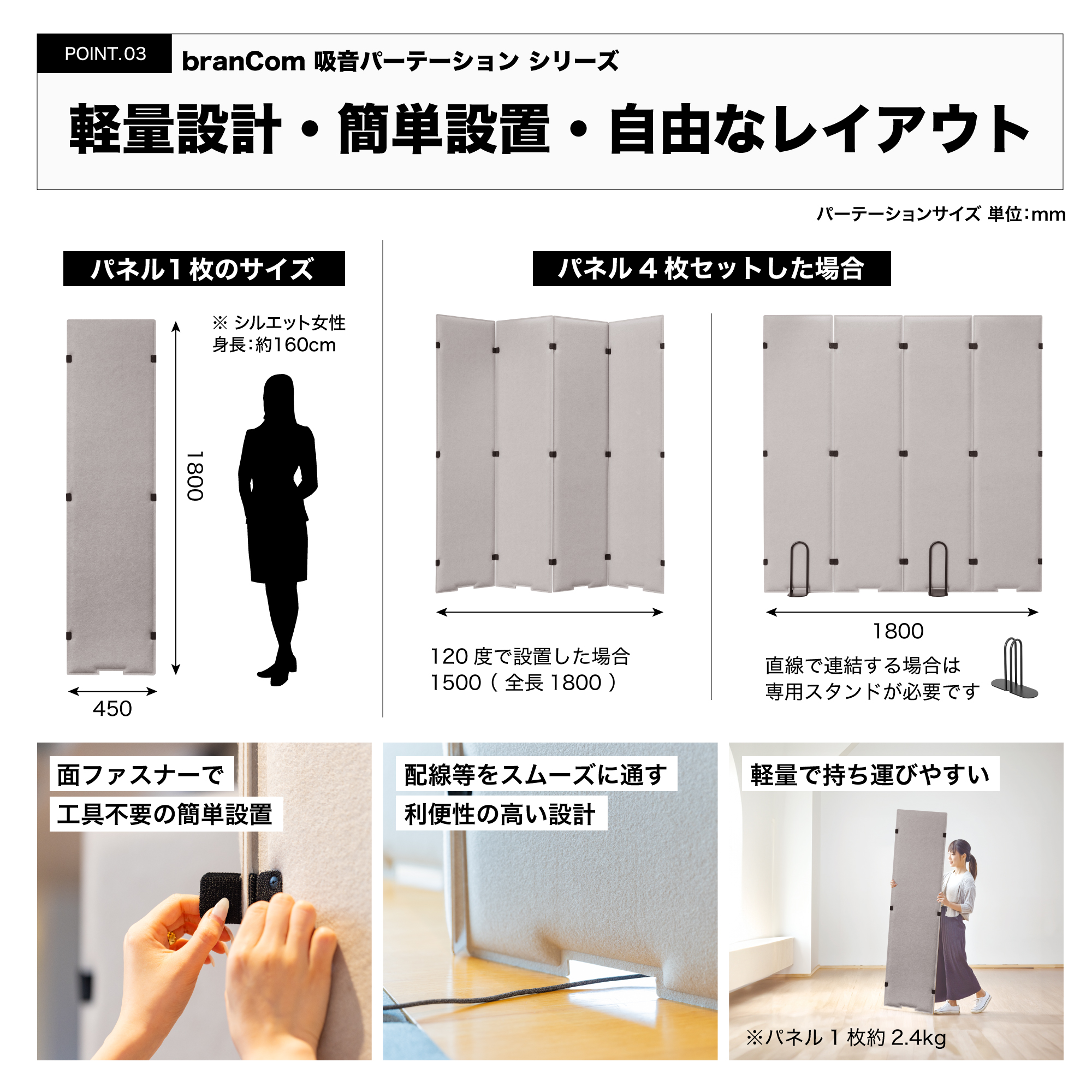 | サイズ | 4枚パネルセット : 幅1800mm×奥行30×高さ1800mm |