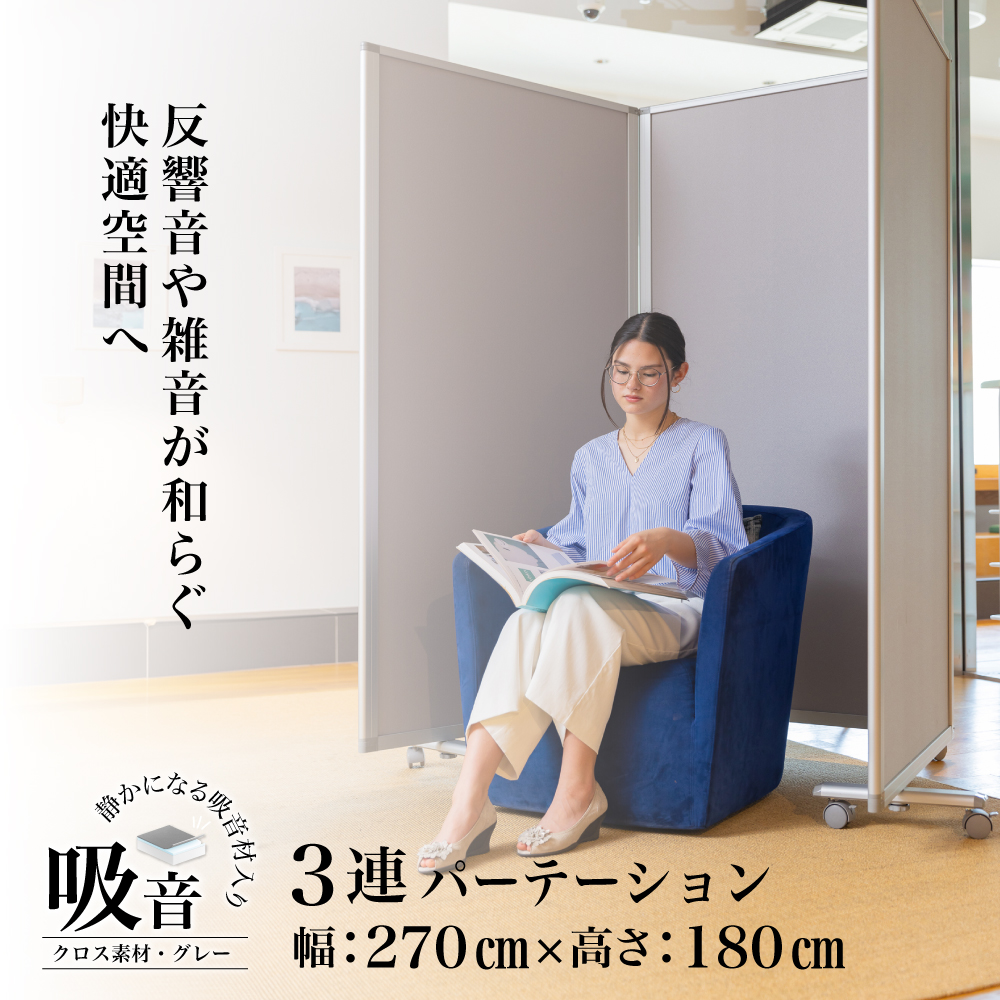 クロスタイプの3連パーテーション 吸音素材入り
